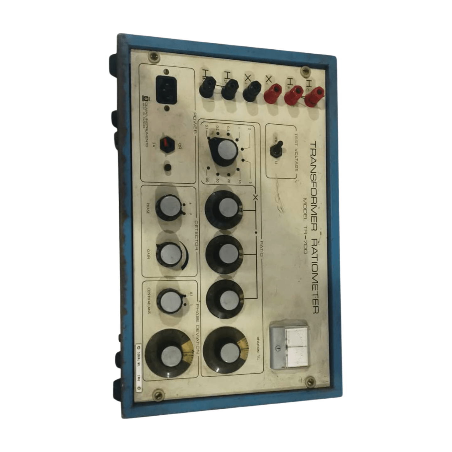The OLMAN TR-700 is a transformer turns ratio tester designed for measuring the turns ratio of single-phase and three-phase power transformers. It provides high-accuracy ratio measurements across the full tap range and calculates deviation from nameplate values. The unit is used for transformer acceptance testing, commissioning, and routine maintenance.